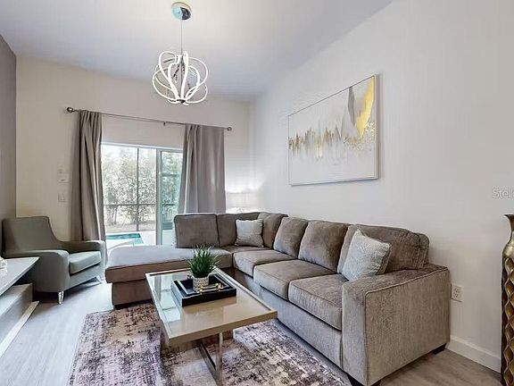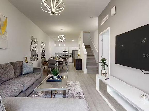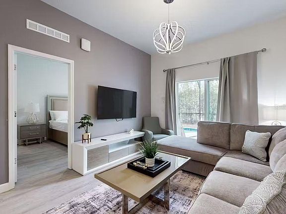 Experience the resort-style living in this beautifully furnished 4-bedroom, 4-bathroom townhouse located in the highly sought-after Azur Resort. This modern home features elegant decor, an open-concept layout, sleek finishes, and a private screened pool, blending comfort and style for the perfect Florida lifestyle. Enjoy resort-style amenities including a contemporary clubhouse, community pool, and Health & Wellness Fitness Center (coming soon). Ideally situated just three exits from Disney World, and close to Publix, Aldi, Wawa, shopping, dinning, and the new Orlando Health Center, and swift access to I-4, with Champions Gate golf courses are conveniently less than a mile away.