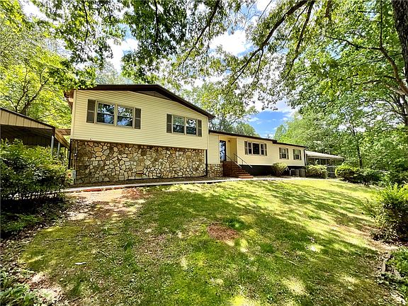 The lower level offers a space that could be used as an in law suite or a 1 bedroom apartment with a separate walk out with a detached carport. There is a living area with a rock fireplace, fitness/ office space, and spacious laundry room with room for a kitchenette. There is a 2 car garage with a workshop and an extra large carport for storage of extra vehicles, boat, etc. This home offers 2 lots with a total of 1.60 acres, fenced in side and backyard, new pool liner, Roof replaced in 2020. The HVAC for the lower level works on heat only, there are 2 small high efficiency window units for cooling. Gutters are covered with Leaf Guard.