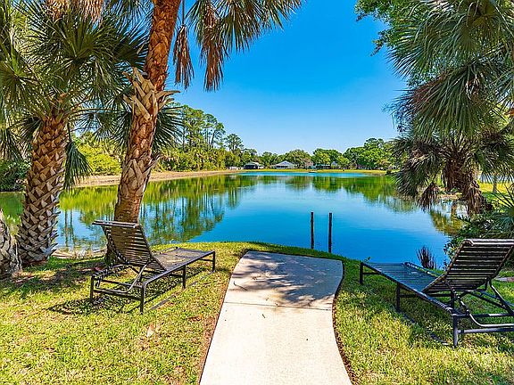 Beautiful 2000 sq ft (2,953 under roof) home in park-type setting on a private lake. This property has 228 ft of frontage at the end of the road and goes back 449 ft and is completely fenced. The beautiful oaks, pines, and palms decorating the property create a serene experience. Fiber internet with speeds up to 5Gbps!!! It is also synchronous - the upload speed matches the download speed! Lots of space! The 4 bedrooms (or 3 bedrooms and bonus den) all enjoy spacious closets - the Master features separate his/hers. Many updates! Complete well/water treatment in 2020, all new appliances in 2021, entire home done in luxury vinyl tile in 2021, new roof and completely fenced in 2022, completely updated kitchen with beautiful Brazilian Casablanca granite (not pictured)! In addition to the over-sized, attached 2 car garage (513 sq ft) is a 20x30 (600 sq ft), 3 bay detached, insulated garage with A/C & heat, 12 ft walls, and a ceiling peaking at 14.5 ft - ready to take on any project!
