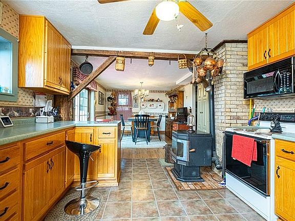 Beautiful Setting and Privacy is what you get with this adorable Home in Slippery Rock, PA! This Home sits on 6.5 acres of flat land. The main floor of the Home has a Semi Open Floor Plan. The Dining Room has a Sliding Glass door that opens to the newly Painted Back Porch with a Stunning View. This is a Great Area to sit back and enjoy a cup of Coffee or Tea anytime or Entertaining Friends and Family! There is Metal Shingle Roof 2015, Hot Water Tank 2018. The Pellet Stove in the Kitchen/Dining area is great for cold winters. There is a Loft at the top of the steps that can be used as a reading space or office. The lower level has a great space for Movie Watching or Game Nights as well a Laundry Area and a 1/2 Bathroom. When getting directions to this home, spell Halston Road with 2 LL's, Hallston.