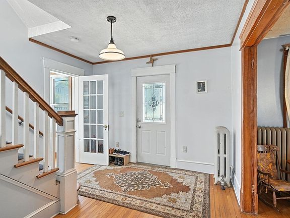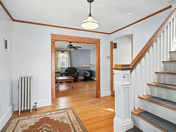 This spacious 3-bedroom Colonial offers classic character with modern comfort. Step inside to find bright and open living areas with hardwood flooring throughout. The kitchen flows nicely into the dining and living rooms, making it ideal for everyday living or entertaining. A welcoming front porch adds curb appeal, while the deck off the back provides additional outdoor space to enjoy. The property sits on a corner lot with a fenced yard, perfect for outdoor activities, gardening, or relaxing. A detached two-car garage includes extra space above that could be finished or personalized to suit your needs. Conveniently located near area amenities, this home is ready for its next chapter—schedule your showing today!