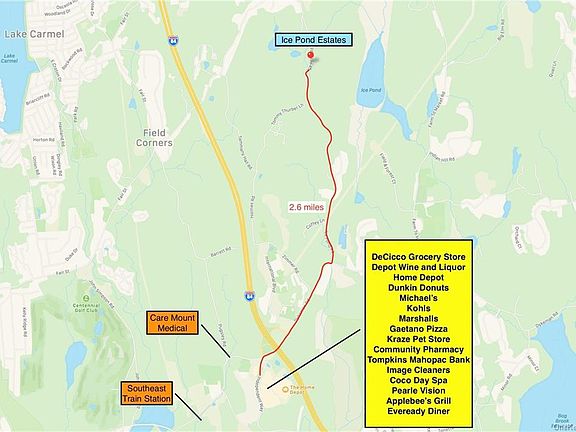 Ice Pond Estates benefits from absolute privacy and unique surroundings in the middle of the beautiful area of Patterson, famed for its natural, preserved land and outdoor recreation. This idyllic development encompasses 38 acres, including a two cul-de-sac, 25 estate lot subdivision with woodlands and a gentle stream. At the heart of the pristine grounds screened by a border of protective foliage are lovely home sites from 1 to nearly 2 wooded acres, most of which have sites for inground swimming pools. Surrounded by hundreds of acres of conserved land, Ice Pond Estates is a mecca for outdoor enthusiasts, with incredible hiking, bird watching and mountain biking. The southeast train, dining and shopping venues are within 3 miles while NYC is just 1 hour away. Route 84 can be reached in minutes. For all its serene privacy, this planned neighborhood offers a rare and exciting potential for developers and builders
