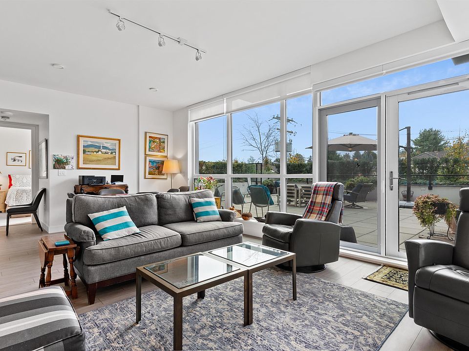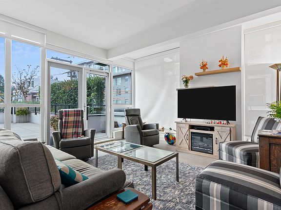 Welcome to the Opal, a refined living experience for the discerning 55+ community in Vancouver's west side. This 2-bed, 2-bath home boasts a 1,000 sqft private patio located on the South Side of the building (Quiet Side). Open concept kitchen with an entertainers island and Bosch stainless steel appliances make up the elegant kitchen. Discover ten unique dining spaces, unwind in the fireside library lounge, or rejuvenate in the Natural Wellness Spa with its one-of-a-kind Himalayan rock salt sauna. Enjoy the rooftop patio and lush garden. Explore your passions in music, art, and workshop studios. Keep fit in the specialized gym, or enjoy a game night in the hobbies and games area. Your well-being is a priority with air-conditioned suites, sound-absorbent flooring, and a suite-to-concierge telephone system. Elevate your lifestyle with an exclusive wine and Scotch bar, a beauty salon, and a theater for entertainment, seminars, recitals, and more. Opal by Element is the epitome of refined living.