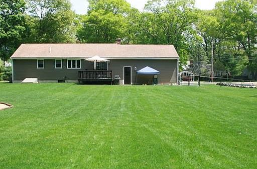 Sunday in the Park! You dont even have to leave your home when you own this gorgeous fenced-in yard! *Years of detailed landscaping distinguish this spacious yard complete with a 50 x 25 fire pit area, sandbox & plenty of room to play badminton, volleyball, horseshoes & so much more*Young, modern & affordable ranch style home with an open floor plan*Enter into your living room with a cathedral ceiling, fireplace, & hardwood flooring*Bright eat-in kitchen with upgraded cabinets, granite counters, island, & recessed lighting*The master bedroom suite has a full bath and walk-in closet*Also on the main level is a second bedroom with hardwood flooring & a tiled half bath*Want more space? You will find a finished family room with carpet & also a den in the basement*Plenty of storage & laundry on the lower level as well*2 car attached garage, irrigation system, brick walkway, stone wall,central air conditioning, great commuter location and so much more. This could be the best buy in Town!