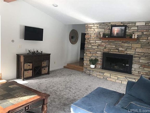 Just minutes from Marquette city, situated on 16 +/- acres with a beautiful wooded ridge on back of property, this bi-level home has open concept living with natural daylight and many appealing features. *Please note there is brand new carpeting and updated appliances since first listed! The entryway is just the start, it is warm and inviting with a stone accent wall, entry closet bench and easy access to drive under garage/custom doggy den! Upstairs, the stone fireplace is the focal point of the living and dining room. Vaulted ceilings, hardwood floors, and sliding glass doors with access to the wrap around deck top off this space. Into the kitchen, there is a built in bar space, double door pantry, spice cabinet, computer desk and breakfast bar. Or take a step out to the enclosed patio! Continued hardwood floors down the hall lead to both of the grand in size guest bedrooms and the 16x16 master suite with a substantial walk-through his and her closet, vanities and separate shower/toilet space. The lower level family room has limitless options, with a 3/4 bath and sauna, plus office/4th nonconforming bedroom space. The storage and conveniences don't stop there, your dream laundry room has a laundry shoot in two places from the main level into the cabinet found here (no more dirty clothes on the floor) plus a sink and folding space. The two closets at the end of the family are MUCH larger than they appear, great game/decor storage. Set up a showing today and you will see all this home has to offer. (lot size and home size are estimated) Outdoor Play-set is negotiable.
