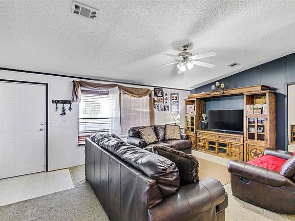 3 bed 2 bath home sits on a little over an acre. This home has metal skirting and a new metal roof. Owner keeps the home spotless. 2 dining room areas and open kitchen. Home has partially fenced backyard, aerobic septic system and city water. 2 car carport on the south side of the house. Plenty of room to add a metal building or barn for animals. Fridge is included with the sale of this home.