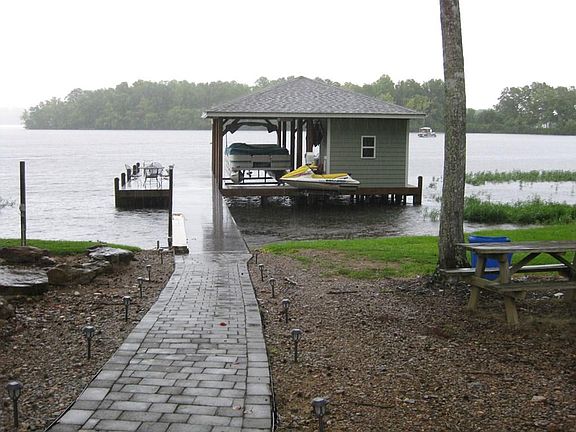GORGEOUS MAIN LAKE VIEWS W/ BEAUTIFUL SUNRISES & SUNSETS & GOOD WATER DEPTH! Custom built Lake home featuring open floor plan that includes the kitchen w/granite, living room, family room, lake side breakfast room w/4 bedrooms, 3 full baths w/marble tops & 1 half, laundry room all on main level. Upper level features large rec area & full bath. Dwelling features central vac, security system & double attached carport. Gently sloping lot allows for easy walking to double boathouse thru professionally landscaped yard w/ underground irrigation. Property includes a private boat ramp; 2 boat lifts, 1 jet ski lift. Water depth day of listing was 6'6". Property also includes a small work shop, & several utility buildings.To fully appreciate the value, beauty, charm, & assets of this property, request an appointment by contacting your realtor today to visit this must see property.