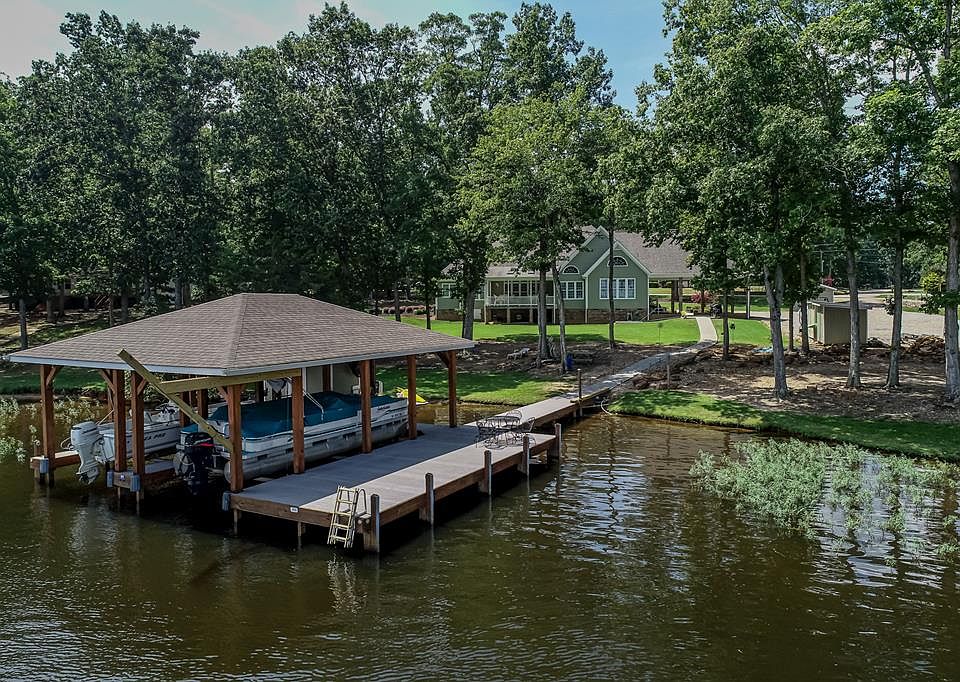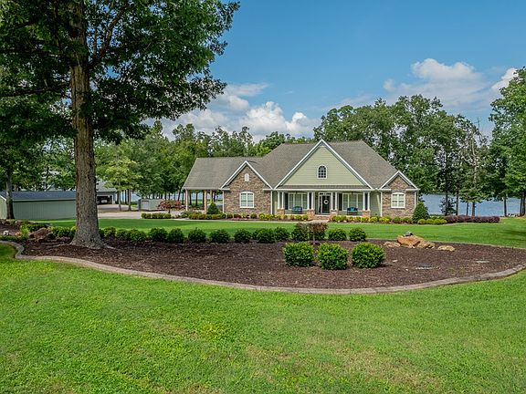GORGEOUS MAIN LAKE VIEWS W/ BEAUTIFUL SUNRISES & SUNSETS & GOOD WATER DEPTH! Custom built Lake home featuring open floor plan that includes the kitchen w/granite, living room, family room, lake side breakfast room w/4 bedrooms, 3 full baths w/marble tops & 1 half, laundry room all on main level. Upper level features large rec area & full bath. Dwelling features central vac, security system & double attached carport. Gently sloping lot allows for easy walking to double boathouse thru professionally landscaped yard w/ underground irrigation. Property includes a private boat ramp; 2 boat lifts, 1 jet ski lift. Water depth day of listing was 6'6". Property also includes a small work shop, & several utility buildings.To fully appreciate the value, beauty, charm, & assets of this property, request an appointment by contacting your realtor today to visit this must see property.