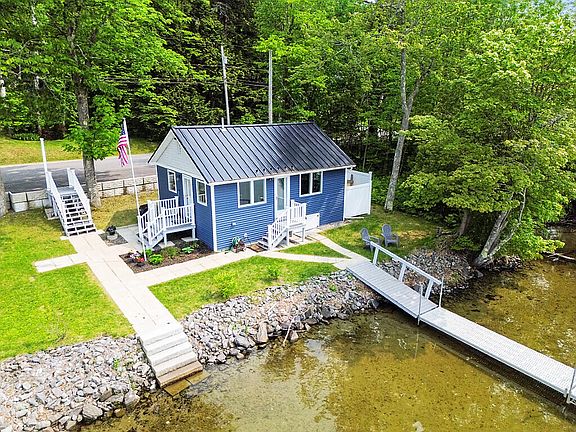 MARANACOOK LAKE - Get ready for summer fun! This turn-key cottage is just steps from the lake with a flat, level lot with 125' on one of central Maine's best lakes! Memorial Drive has a low speed limit, offers public sewer & water and coveted sunsets each evening. This property is one of the best on the lake with long views across the water and a huge grassy lawn for games, fire pit & nice sandy bottom. The owners have done a complete rebuild of the entire 1951 grandfathered structure and spared no expense with the high end finishes and an easy living layout that takes advantage of the lake views! All new insulation, electrical, raised ceilings, custom kitchen with granite countertops, appliances & cabinets, new windows, flooring, new bathroom with walk-in shower and granite vanity top, new bedroom with pocket door closet, built-in storage & granite top, flooring, hot water heater, heat pump with A/C, metal roof, easy to maintain siding, security cameras, jacked and leveled with new pillars & concrete pads, new sewer line with back flow valve, new front & side composite stairs and fenced storage area. Outside the owners have all new landscaping with fill, grass, rip rap shoreline, granite steps into the water, and created four new paved parking spots with commercial retaining walls so your guests can come visit. Maranacook Lake offers above average water quality, no invasive milfoil, fantastic warm & cold water sport fisheries, is over 125 feet deep, has two public boat ramps with 1800+ acres & 22+ miles of shoreline to explore! Just a short distance from Winthrop shopping and amenities, as well as 15 minutes to Augusta & I-95. Cottage comes fully furnished while the pontoon boat, dock system & kayaks can also be purchased separately so you are ready to enjoy the lake for the Fourth of July weekend!