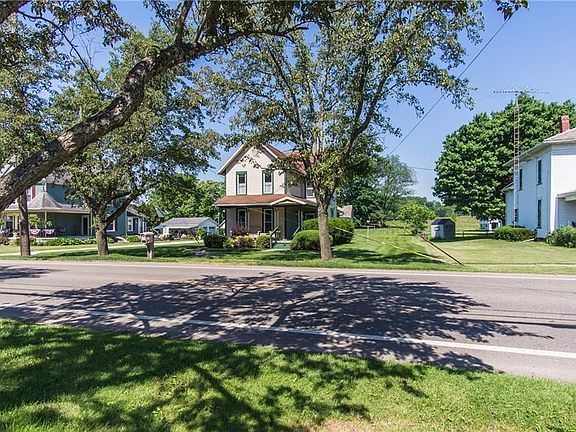 Take a look at this two story home located in the village of Bolivar with a .75 deep lot and detached 2 car garage!. This two story has many updates done include: 2006-roof, vinyl siding, windows, insulation blown in. Two exterior doors replaced recently. The front porch invites you into the spacious dining room. Living room with exterior door to porch as well. Den/Tv room is perfect for relaxing after dinner. The large window of this home offer much natural lighting. Ample sized kitchen includes plenty of counter space and pantry for storage. Full bathroom with linen closet. Enclosed side porch and foyer offer plenty of storage space. Second level features owner bedroom with 2 closets. Second and third bedrooms with closets. Half bath hasnt been used in many years. Full unfinished walkout basement. Detached two car garage with storage attic space. Large backyard is nice for kids to play and it overlooks farm field. What a nice place to call home...close to shopping and dining plus quick highway access!