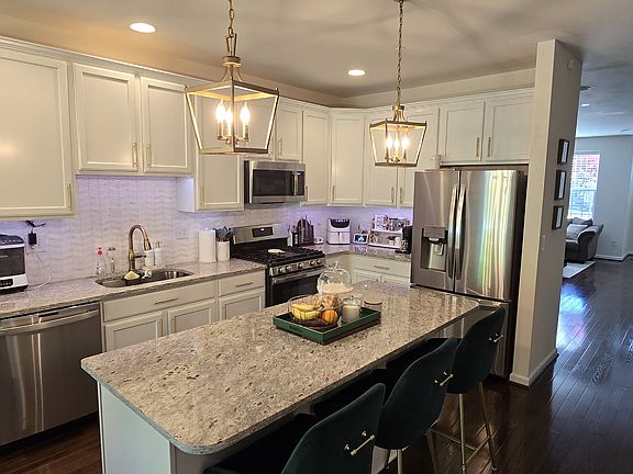 Spacious open concept townhome with lots of upgrades, natural light, large rooms. Perfect for a small to medium sized family. Enjoy a beautiful neighborhood with lots of greenery. Large kitchen with upgraded appliances Dishwasher Fridge Gas Stove Above Range Microwave/Hood Fan Marble Counter Top Kitchen Island Upgraded lighting Spacious living and family room with high quality dark hardwood floors High Ceilings Gas fireplace Forced AC Forced Heating 3 spacious bedrooms with upgraded accent walls Extremely large Master Bedroom with vaulted ceilings Walk in closet Double Sink Ensuite Washroom Second full washroom upstairs Unfinished basement - large open concept Sump Pump Single Car Garage Double side-by-side driveway parking Beautiful Deck in backyard with treeline for added privacy. No Smoking Allowed Renter pays for Gas, Water, Electricity. Grass cutting is maintained by HOA.