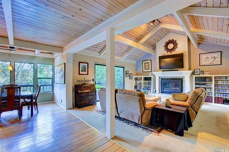 Charming and private 3BR/3BA home on a large lot in desirable Homestead Valley. Few flat areas. Great room with cathedral ceiling & fireplace; open kitchen/dining room combo with skylights; a bedroom & full bath on main level. Glass doors to a large deck. 2 car garage, and room to park 2-3 additional cars, large covered storage. Steps from miles of hiking trails. Easy commute. Open Sat. 2-4 & Sun 1-4 pm.