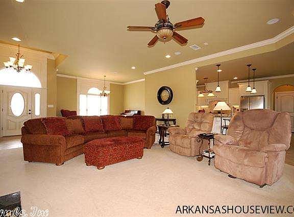 Gorgeous top of the line home sits on 2.39 acres, 3 large bedrooms, 2.5 baths, split floor plan, 9ft ceilings and lots of built-in cabinets with lighting. Living room has 10ft ceilings, fireplace. Custom kitchen with granite counter tops, tile backsplash, under cabinet lighting, double ovens, pantry and breakfast bar. Master has lighted tray ceiling, jetted tub, double sinks, walk in shower. Handicap friendly! Surround sound, covered patio, detached all brick shop, central vacuum and interior SAFE Room!