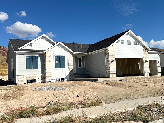 BRAND NEW RAMBLER on the Smithfield Bench! Welcome to the "EMERSON 1656" floor plan. This amazing home has 3 bedrooms, 2.5 bathrooms, 3 car garage and 9 feet ceilings on the finished main level. Open concept Kitchen / dining /living room with a kitchen island, custom made cabinets, quartz counter tops and spacious pantry. Also many tall windows to create a bright and welcoming space. Take a step into the main floor principal bedroom and you will fall in love with the elegant tray ceilings, spa-like master bathroom with granite counter tops and separate tub and shower. You will be amazed at the size of the walk in closet! The unfinished basement offers endless possibilities with space for an additional 3 bedrooms, a full bath, and a spacious family room, providing flexibility for future growth. Mountain and Valley views are visible from every window. The builder's attention to detail and functionality shines in every corner of this home. Come see for yourself what makes this property truly special! Estimated Completion by End of October. Call agent for more details.