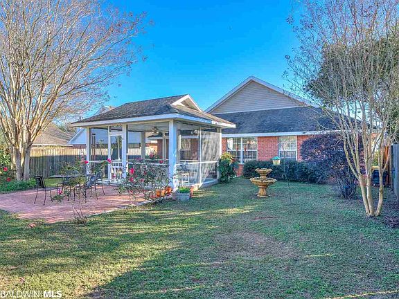 Location! Location! Location! 10 minutes to the beach, a mile to Hwy 59 or The Beach Express. Grocery stores, Target, automotive, restaurants and outlet shopping within minutes! All brick home in the sought-after Gulf Shores neighborhood of Cotton Bay. Original owner has taken great care of this home - Pride of Ownership shows throughout! This home offers over 2000 Sq. Ft., a spacious split floor plan , a separate Den with a wood burning fireplace and a separate dining room. The Master Suite area is very private and removed from the main living areas - two walk-in closets, double vanity, a soaking tub and free-standing shower. Very functional kitchen space featuring a large pantry, lots of cabinet space and a breakfast/dining area with lots of natural light. Enjoy the outdoors in your screened in patio or get some sunshine on the extended decorative paver patio. Beautiful landscaping greets you in the fenced backyard. New HVAC & Water Heater and stainless steel Bosch Dishwasher installed in 2017. Low association dues of $275 annually. Be sure to view the Virtual Tour!