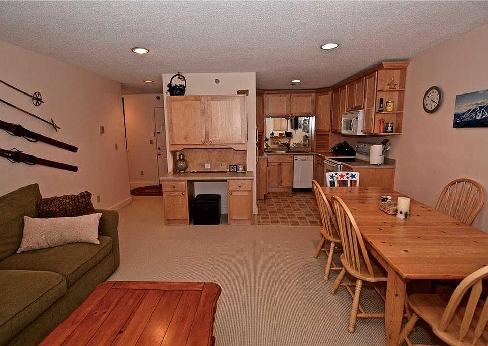 Top floor, fully renovated, two bedroom unit in Building II w/ mtn views. Kitchen renovation incl. maple cabinets, appliances, flooring and built-in storage; other upgrades incl. built in gear storage, wool berber carpet, built-in desk area, gas fireplace, bathroom and more. Ski in/ski out superb direct slope access onto Sundance & Southway trails to South Ridge lodge or lift out on NP Quad. Building features incl. large owners locker, coin operated w/d, outdoor pool- other on-mountain amenities.