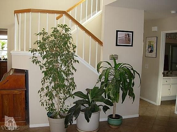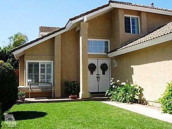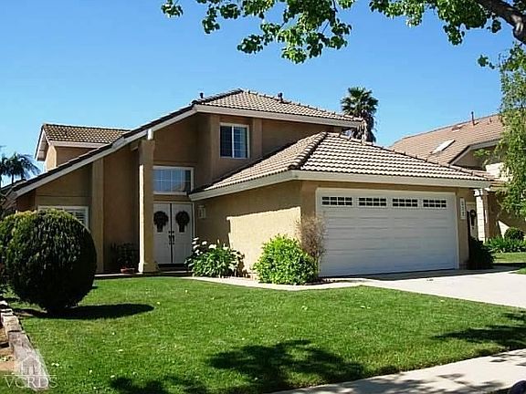 Open House Sunday April 21 from 1:00-3:00! Beautiful Wood Ranch home with cul de sac location close to the park. The skylight above the stairs fills the living room and formal dining area with natural light. Plantation shutters appoint the windows in the living room,family room, & dining area. The family room showcases a beautiful fireplace & wood flooring. Granite counters and a garden window are featured in the kitchen. The downstairs bedroom with double doors would also be perfect as a home office/study. A spacious balcony awaits you just outside the master suite. The master bath has a large vanity with double sinks, tub/shower and walk-in closet. The 2 secondary upstairs bedrooms conveniently share a full Jack & Jill bath. An expansive covered patio is perfecting for entertaining or just relaxing in the peaceful surroundings. Orange and lemon trees dot the property which backs to a greenbelt. Don't forget that beautiful garage with tiled floor and lots of storage cabinetry!