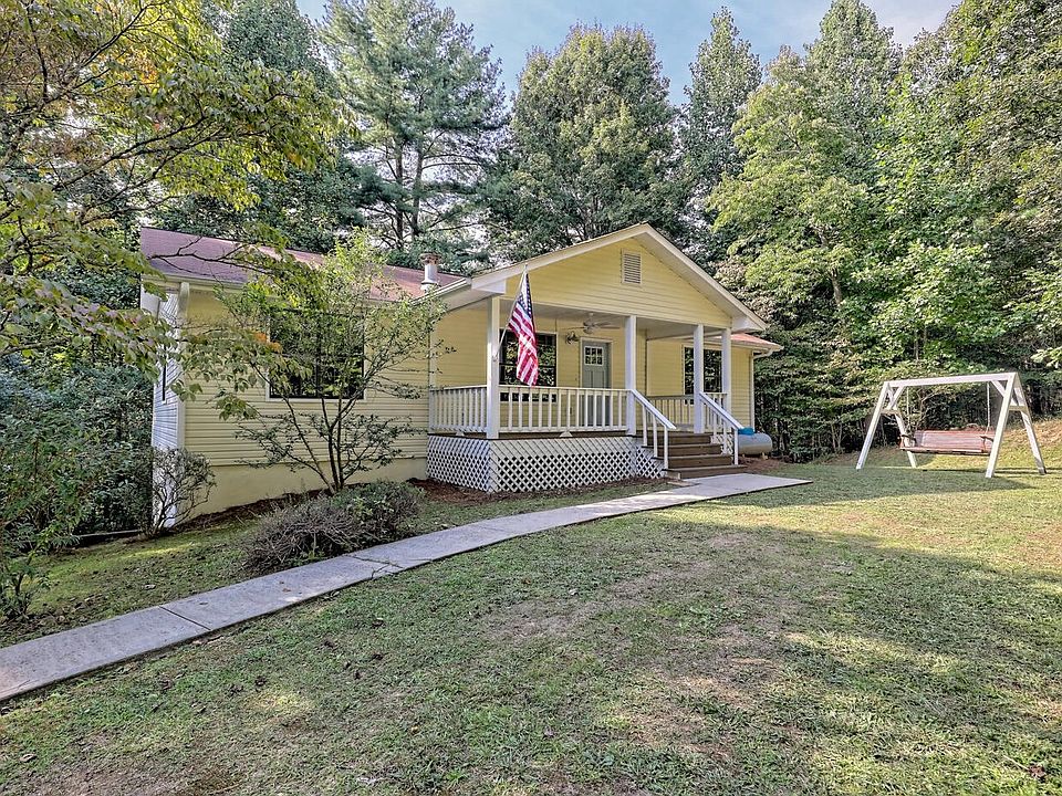 This newly refreshed home, located on 0.75 acres that backs up to National Forest Service land, has incredible potential as a main residence, a perfect get-away home in the mountains. This low-maintenance home features vinyl siding, asphalt shingles, and new paint and wood floors throughout the home. New granite countertops, bathroom fixtures, and stainless steel Whirlpool appliances make this home shine. The main level features a master bedroom with a full bathroom ensuite and a large walk-in closet. A second bedroom and an additional full bath, open kitchen, dining, and family room combination, and a stone gas-log fireplace complete the main level. The basement has a large bedroom room and a den that is perfect for the much-desired man cave! A drive-in garage is also located in the basement as well as space for a workshop. A large, covered front porch that's just begging for a rocking chairs and a double swing, and a back-deck that's a perfect spot for outdoor grilling and entertaining complete the home. This home won't last long!Septic has been approved for 2 bedroom