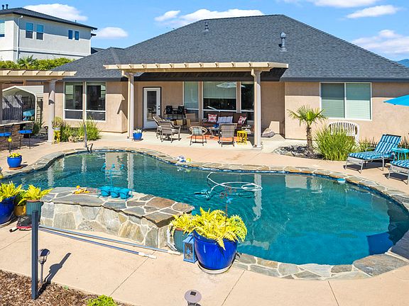 ENTERTAINER'S DREAM with a Gorgeous Pool & Mt. Lassen Views! Located in the sought after Highland Park Neighborhood! Featuring a low maintenance front yard with a covered porch and EXTRA parking, a 3 car garage with RV/Boat parking! The bright & open living area offers a luxury feel with its tile flooring, high ceilings, crown molding, & cozy fireplace! A custom chef's kitchen with high end upgrades, granite countertops, tile backsplash, large center island, extra sink, breakfast bar, & stainless appliances! Three spacious bedrooms which include a relaxing Primary Suite with a tiled shower, soaking tub, & large walk-in closet! Amazing outdoor space to enjoy the sparkling pool complete with two covered patios & an additional outdoor kitchen area!