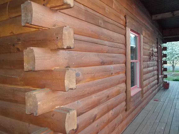 Beautiful log home with wrap around covered porch and a brand new garage. This home features a nice rustic feel close to Summersville Lake. Kitchen appliances along with custom window treatments remain with the home. Beautiful country setting.