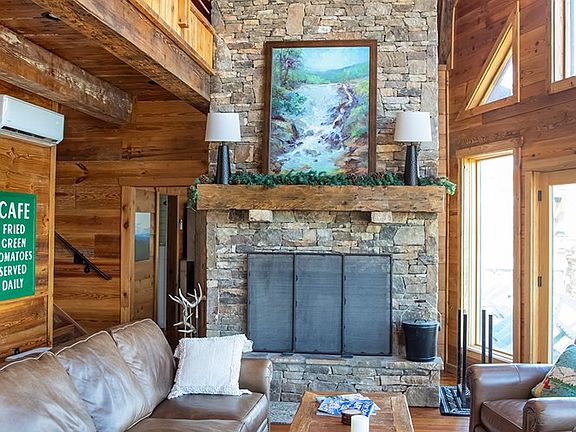 Stunning custom home on a large lot in a great soon to be gated subdivision. Private with paved access for year around accessibility. Post and beam style with old beams from an old cotton mill. On the main level you have a large open living room with a huge stone wood burning fireplace and many windows to enjoy the breathtaking views of the mountains. Heart pine floors and ceilings. Multi level mountain ranges. Antique doors throughout. Large master with tile shower and claw foot tub. Off of master you have a screened in sitting area with stunning views. Kitchen is open to dining area and living room. Kitchen cabinets are barn wood with soapstone counters that are butter soft. All the bathrooms have soapstone counters with old farmhouse style sinks. Closets have cedar wood. Additional bedroom on main with lots of windows. Laundry with instant hot water and another full bath on main for guest. Upstairs you have old corrugated tin on the walls with some tree bark to accent. Built in set of bunk beds with a wet bar with soapstone counter and sitting area. Galvanized steel roof. Outside storage shed. Porch w/ sitting area at the end of the house. MAGAZINE WORTHY HOME! Furnished