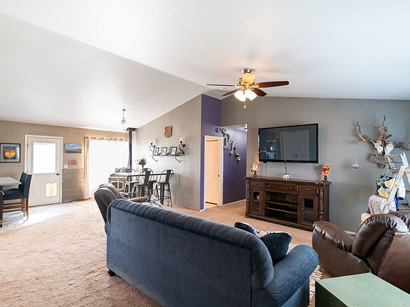 Welcome to this adorable 3 bed 2 bath home, this home has vaulted cielings more storage areas than you will know what to do with, 2 large bathrooms and a great useable lot. A pellet stove for those chilly mornings that are coming, along with propane heat, all newer appliances, front yard has sprinkler system, there is a fence for animals in back then the remainder of the acreage is all fenced as well. Shed will stay with property, and dont forget to check out the 'man cave' in the garage!