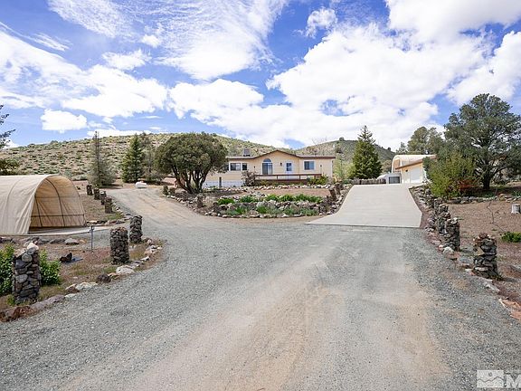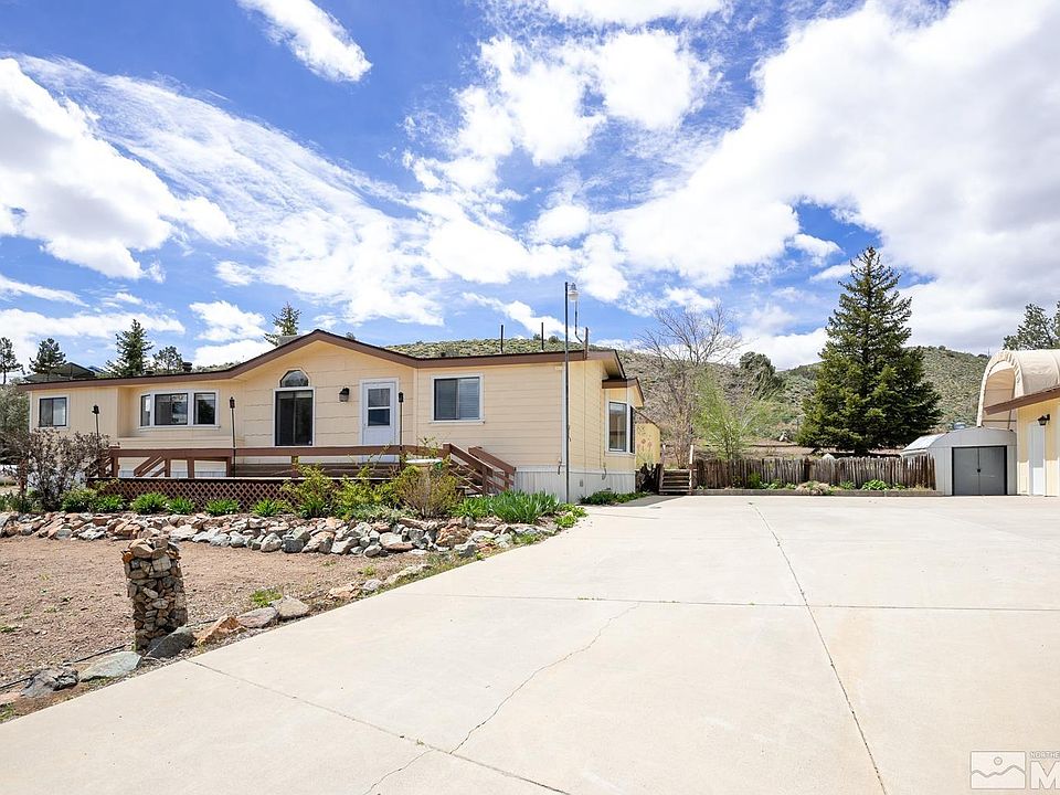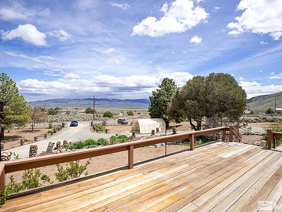 This home just had a new roof installed! A private, rural oasis in Topaz Ranch Estates! Enjoy your own secluded retreat on a sprawling 3.3-acre lot with few neighbors and uninterrupted views of the surrounding hills and mountains. This move-in ready, thoughtfully updated 3-bed, 2-bath, 1455 sq ft, single-story home features sought after amenities that include inviting paint hues, laminate floors, and a multitude of oversized windows., The light and spacious great room boasts vaulted ceilings, wood beam accents, and a door that conveniently opens to the enclosed sunroom and rear patio. With ample cabinetry, a built-in single oven, dishwasher, garbage disposal, built-in microwave, island with gas cooktop, and windows that overlook the front of the property, the kitchen is an at-home chef's delight. Each bedroom provides its own walk-in closet and the master bedroom boasts an ensuite bathroom with double sinks, stunning clawfoot tub, and separate shower stall. The laundry room offers extra cabinetry and a countertop – great for additional storage space. Relax on the large, wooden front porch, or enjoy putting to use the expansive driveway, detached garage, and an RV access/shelter that can hold all your toys and then some. The adjoining undeveloped acreage (and few neighbors) provides privacy and tranquility while the low-maintenance xeriscaping with mature trees and shrubs adds to the home's charm. Just minutes from Hwy 395 access and the shores of Topaz Lake, this generous Wellington property is an ideal find for anyone seeking the peaceful comforts and wide-open spaces of country life, so don't miss out on this rare opportunity to own this piece of paradise – schedule your showing today!