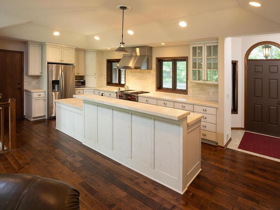 This stunning one level living rambler offers extreme privacy and awesome pond/forest views. Rebuilt in 2010, this home offers an open floor plan, chef's kitchen, wood flooring, main level laundry, oversized detached 1 car garage for toy management, 2 pond features, maintenance free deck overlooking wooded backyard, porch, lower level in-law suite, and more. Close to shops, parks and more. Includes 1 Year Edina Home Warranty. Check out the 3D virtual walk-through tour!