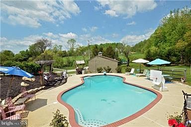 Beautiful Oasis. 4 br/2 ba Rancher sitting on an acre of land with a stream running in the back. The house has hardwood floors, central AC, gourmet kitchen, large sunroom with deck, and finished walk-out basement. In the rear yard is a large in-ground pool and huge mechanics barn with a large covered parking pad.