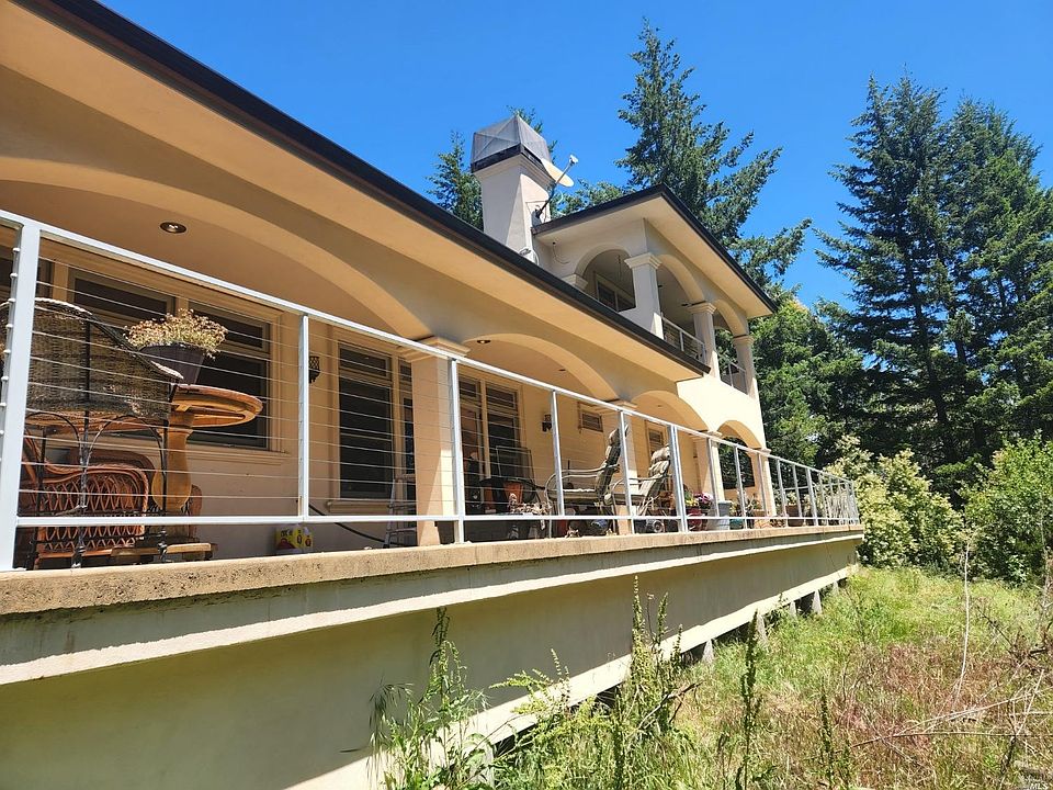 Mediterranean styled 3 bedroom, 2 bath, home on 21 acres. Spanish inspired great room design of this stucco home, with large luxurious kitchen. formal dining room, and huge living room with woodstove insert. Upstairs spacious master suite with jetted tub, private fireplace, and veranda with mountain views. 4 car garage, covered front and rear porches. All the finest touches throughout this home. Detached 35x60 shop, additional detached 2 car garage, large garden beds, pond, and multiple clearings throughout. Multiple water tanks with up to 50k gal in storage. One spring has a reliable year round pond which includes a dock. Only a 30 minute drive to the Ocean and about 10 min to Laytonville. Owner May Finance with large down.