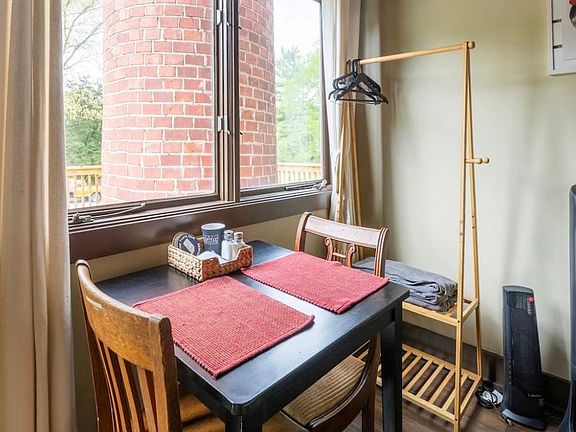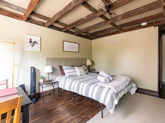 A rustic feel but clean and cozy recently renovated efficiency apartment in the loft of a barn.