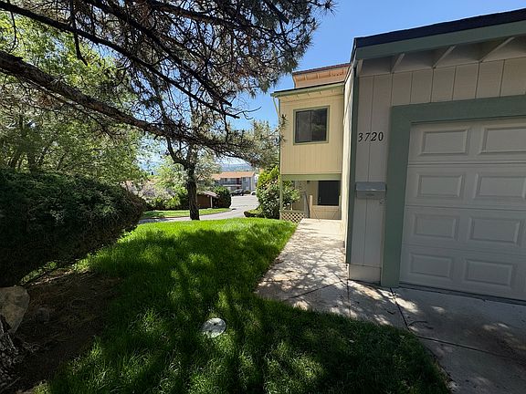 This 4 bedroom 2.5 bath, 2 car garage townhouse is ready for you. 1 BR/office on main level with 1/2 bath. Laminate flooring in living room and kitchen. Brick fireplace. Stainless appliances & oak kitchen cabinetry & tile breakfast bar. Separate laundry room with lots of shelving - could double as a pantry - washer and dryer hook ups. Living room sliding door opens to large deck with views. Master Bedroom & 1 other BR also access upper deck with great views of city & mountains. 3 bedrooms & 2 full baths upstairs. End unit with large common area greenbelt alongside.One year lease. Sewer and Hoa fees covered by owner.