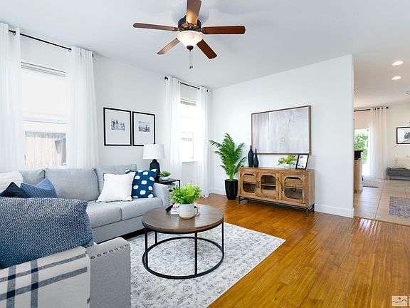 This beautifully upgraded home is packed with modern amenities and thoughtful features. Step inside to the warmth of bamboo flooring in the front room and stylish tile flooring throughout the rest of the downstairs. The kitchen and bathrooms feature elegant granite countertops and upgraded knotty pine cabinets. The interior has been freshly painted, giving the home a bright and welcoming feel. The kitchen is equipped with stainless steel appliances, and the sale includes the refrigerator, washer, and dryer, making this home move-in ready. Additionally, the property is equipped with a 30 amp external RV outlet, perfect for those with recreational vehicles. The driveway can be easily enlarged to create more space if desired. Nestled in a quaint neighborhood, this property offers an excellent location close to TMCC, UNR, downtown Reno, and HWY 80. The good-sized yard is easy to maintain, private, and fully landscaped, complete with sprinklers and a drip system. Additional perks include larger bedrooms, with an extra-large primary suite and the convenience of an upstairs laundry. This home is perfect for those seeking comfort, convenience, and modern living in a prime location.