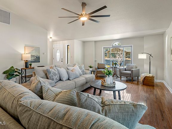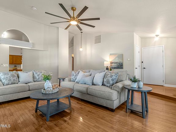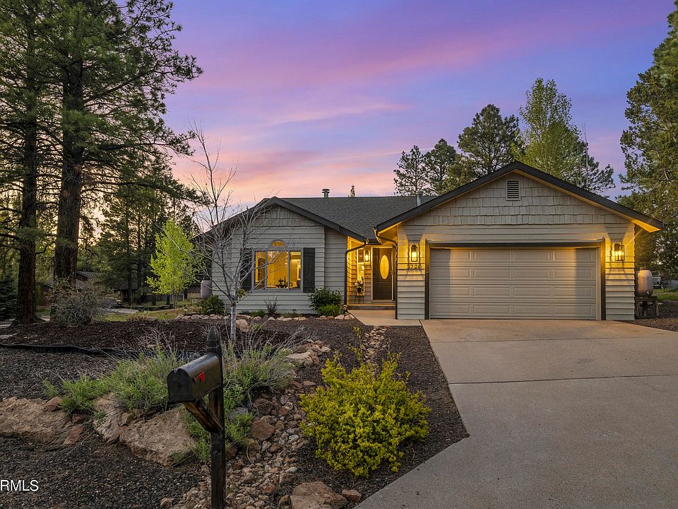 Charming single-level Elk Run home, just moments away from Aspen Valley Golf Course. Situated on a quarter-acre corner lot on the edge of Country Club, this spacious 3-bedroom is an ideal retreat for a primary residence or second homeowner alike. Step into the inviting family room with vaulted ceilings and solid oak wood floors that smoothly connect to the kitchen, living room, and dining areas. Newer carpeting adds comfort to the generously sized bedrooms while the bathrooms have been tastefully updated. Outside, a fenced patio beckons for BBQs and relaxation in the summer breeze. Enjoy the convenience of a south-facing driveway, nearly flat for easy access during cooler months. With its clean canvas, this home can accommodate almost any lifestyle, so discover comfort, style, and the chance to make this desirable Flagstaff house your home!