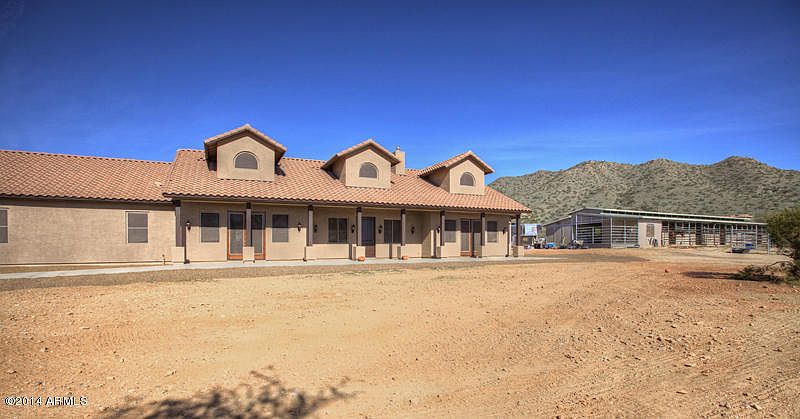 2.45 Acres situated in the Town of Cave Creek with trail access, quality horse facilities, and a terrific home! Barnmaster 12-stall barn (Six oversize 12 x 18 stalls) with auto waterers, fly spray system, tack and feed rooms, custom wash rack, 80 x 200 arena with quality footing, and 70 x 90 turnout. Quality 6' fencing around perimeter of the property and easy drive-through for your horse trailer. The home features an open Great Room floor plan, high ceilings, solid core doors, slab granite counters and stainless steel appliances in kitchen, and tile flooring throughout. The master bedroom is split for added privacy and features an adjacent den/study. All bedrooms have direct access to the outdoors, and the 3rd bedroom is an attached casita with living area. 3-car, extended length garage