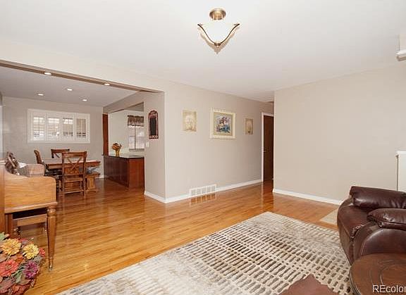 Lovely rancher in desired Cherry Hills Manor neighborhood; updated kitchen with granite counters, stainless steel appliances and dark wood cabinets, large eating area, formal living and family room on main level with wood burning fireplace. Three bedrooms (master plus two) on main adjacent to the full bath and 1/2 bath adjoins master bedroom. Huge fenced back yard including shed and dog run with covered patio. RV pad (fits standard 5th wheel) beside the attached two car garage. Basement has non-conforming 4th bedroom, laundry and additional family room area as well as lots of storage. Definite MUST SEE! Great location - close to Highline Canal and lots of trendy shops and restaurants!