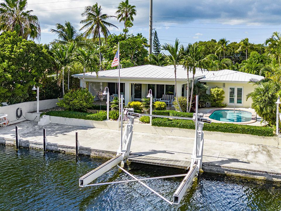This is a rare find on the Riviera Canal in Key West. This tranquil oasis offers unparalleled waterfront experience in one of the most coveted locations in Key West where every day feels like a vacation! Newly built in 2016 to the highest hurricane proof standards, this one-of-a-kind four-bedroom, two-bath haven is more than just a home--it's a boater's dream, a sunseeker's paradise, and the ultimate in indoor-outdoor luxury living. Offered turn key!Imagine waking up each morning in the heart of this island gem, with 80 feet of wide canal frontage just outside your door, complete with a 20,000 lb boat lift and davit ready for your larger vessel. Whether you're setting sail for a day on the water or simply soaking up the tropical vibes, this home puts you right where the action is.The split floor plan gives everyone their own space to unwind, while the open-concept living area beckons you to gather and celebrate the good life. With wall-to-wall sliding glass impact doors and travertine floors throughout, your living space seamlessly merges with the outdoors, bringing in natural light and the gentle breezes. Step into your own private oasis! A sparkling pool, surrounded by meticulously maintained landscaping, is the perfect spot for a lazy afternoon dip. Prefer a sunset barbecue? Your covered outdoor dining and lounge area sits on sleek travertine floors, with plenty of space to relax rain or shine.The kitchen is a showstopper, featuring quartz countertops, custom cabinetry, and stainless-steel appliances, perfect for whipping up fresh seafood feasts or hosting cocktails at the bar with a view of the pool. The primary bedroom is the ultimate retreat, with its own seating area and French doors that open right onto the pool deck. Additional features include a whole-house Generac generator, impact and soundproof windows and doors throughout, and a gated circular driveway that offers complete privacy.
