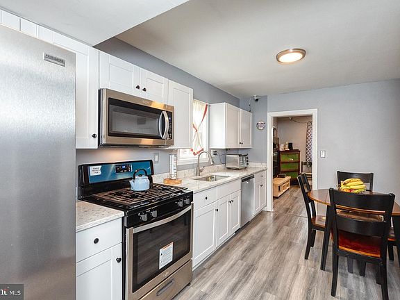 Welcome Home! Fully renovated rancher with beautiful hardwood flooring throughout main level, modern white kitchen with quartz countertops, stainless steel appliances, beautiful neutral gray paint, and updated baths. Walk in to find a spacious light flooded living room that leads you to the eat-in kitchen which has access to rear sun room and yard. Two spacious bedrooms and one full bath are on the main level. The finished lower level hosts the spacious third bedroom with a large walk in closet and a secondary closet for additional storage, and the second bathroom which has been fully renovated with wood floors and tiled shower. A large family room or flexible space and laundry room with storage space are also in the finished lower level. Large front and rear yards plus a two car detached garage complete this home!