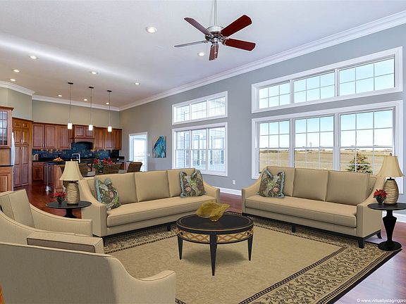 Beautiful ranch home with over 4,000 square feet of finished space. Main floor features recently refinished Brazilian cherry hardwood floors; double entry with tray ceilings; private office; open kitchen with pantry, s/s appliances and oversized island w/Black Galaxy Granite; generously sized great room w/gas fireplace flanked by built in bookcases and transom windows; four season room off the kitchen leading to the composite deck; open library with built-in shelving to the ceiling and a sliding ladder for access; and a private master suite. The light-filled, walk out lower level is welcoming with a fabulous granite topped wet bar open to the family room and patios (one covered and one open); three guest rooms; two full baths; a wine cellar and plenty of storage. Three car garage is heated and there is an irrigation system for the beautifully landscaped yard. Bettendorf School District. Seller is offering $2,000 BCC with acceptable offer, to be negotiated with offer terms.