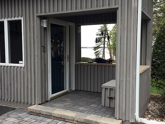 Gorgeous, contemporary waterfront home boasts breathtaking lake views from every room with daily sunrise and sunset displays. Nestled in a protected sandy bottom bay on the south shore of Lake Butte des Morts, with access to surrounding lakes and rivers, this well-maintained property features a 113 ft lake front – deep enough for boating, shallow enough for family swimming fun. The three-season porch welcomes you with its ceiling-to-floor sliding-glass wall (400 sq ft) facing the lake. Entertain in grand style in the living room with wood-burning fireplace; lovely formal dining room with wet bar; spacious, gourmet, custom-built kitchen with island; first floor laundry room; huge mezzanine (office/rec) room; and large, walk-out lower-level bar room. Three traditional and two non-traditional bedrooms (one on lower level is adjacent to private bathroom). Pleasant cross-breezes throughout the house. Magnificent starry nights without the interference of city lights. Wooded lot assures privacy and quiet seclusion, attracting a diversity of wildlife – deer, turkey, mink, and a variety birds from orioles to pelicans and eagles. Newly remodeled bathrooms, including steamer shower in lower level. Newer roof, windows, and interior and exterior paint. Minutes away from hospital, schools, churches, grocery, restaurants, outlet mall, etc. For more information or to see home, call (920) 979-2609.