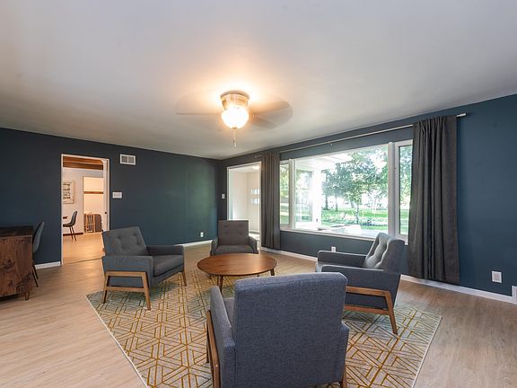 Over 3300 square foot main floor living area located on peaceful 1 acre wooded lot set back from Michigan Ave. This beautifully updated mid century modern ranch features 3 bedrooms, 2.5 baths, 3 natural fireplaces, and vaulted ceiling family room. This is all connected by a stunning sunroom which overlooks oversized patio with new concrete and huge wooded lot. Each room freshly painted to create a crisp, clean look while accented by Pecky Cypress wood beams and siding. New luxury plank flooring and carpets throughout the house. Roof was replaced in 2013. 2 water heaters provide independent laundry and bath. 2 furnaces allow for zoned heating throughout the house. House has motion and glass breakage alarms. Attached 2 car garage along with plenty of parking along circular driveway.