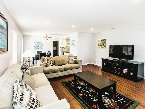 Absolutely adorable single level detached cottage on a quiet street within a small enclave of beach-close homes! Situated on a rare corner lot providing a larger yard & plenty of natural light, this home offers a remodeled kitchen with quartz countertops, marble backsplash, & new stainless sink & new appliances. Bright bathrooms feature new vanities, mirrors, light fixtures, custom tiled showers, & sunlights! Hardwood tile flooring, new dual pane windows & slider to backyard, and fresh paint inside & out.Fully enclosed drought tolerant backyard with fountain and large tropical planter featuring palms and fruit tree. Spacious two-car garage with new garage door with windows. Entire home was re-wired in 2015 with recessed lighting and dimming features. Double-door entry lets in coastal breezes, with the sandy shores of Carlsbad beaches less than 0.5m away. Restaurants, shops, coaster train station of Carlsbad Village are just moments away, and nearby rail trail provides a safe and convenient walking/biking path for convenient access! Also close are award winning Carlsbad schools including Jefferson Elementary (features International Baccalaureate program) and nearby to Valley Middle School, and Carlsbad High School. Low HOA fees of $108/mo include exterior gardener, master insurance, management fee. RV/boat parking available.