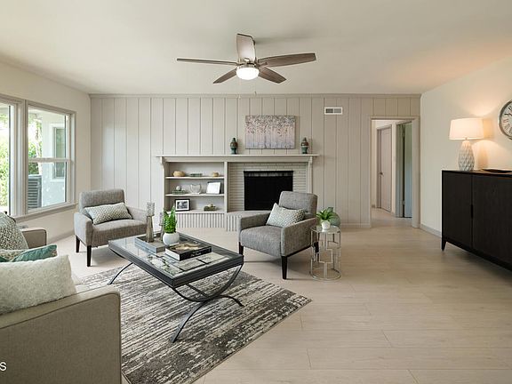 Nestled in the sought-after Hastings Ranch neighborhood, this beautifully remodeled gem offers 3 bedrooms, 2 bathrooms, and a spacious backyard! Spanning a generous 10,894 square-foot lot, the property showcases various desirable features. Past the front door, the open floor plan instantly captivates, revealing a luminous living room, dining area, and kitchen. The living room boasts stylish laminate floors, a ceiling fan, ample natural light streaming through a large window, and a welcoming fireplace, perfect for hosting gatherings. The dining room features a sliding glass door, while the kitchen impresses with its expansive quartz countertop, hexagon tile backsplash, Samsung stainless steel appliances, recessed lighting, and abundant storage cabinets. The adjacent kitchen leads to a laundry room with backyard access. Conveniently located off the entry, there is a stunning bathroom with floor-to-ceiling tile flooring and a single-sink vanity. On the opposite side of the home sit the three bedrooms, each adorned with spacious sliding closet doors, ceiling fans, and large windows. The luxurious hallway bathroom features a large vanity space, two sinks, and a tub/shower combo with floor-to-ceiling tiling. There are many things to love about this home, especially the backyard adorned with lush trees, foliage, vibrant greenery, and stunning brick pavers--an idyllic setting for summer barbecues and alfresco dining. Completing the package is a detached two-car garage, providing ample space for parking and storage. Located in a highly sought-after neighborhood, this fully updated home is the perfect place to enjoy the Southern California lifestyle, with great shops and restaurants nearby. Don't miss the opportunity to call this fully remodeled home yours!