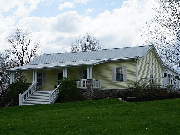 Well located country living at its best 4 bedroom, 2.5 bath with over 2500' total square feet finished including the basement. Basement plumbed for a kitchenette, large enclosed back porch for entertaining with a hand crafted hanging table made of sassafras and a hand crafted hanging bar made of walnut. Private flower garden outback with swing and fire pit that remain. 30' x 40' detached building with stalls and storage, horse walking coral, and a small outbuilding. Bon fire pit with built in benches, propane tank owned by the owner.