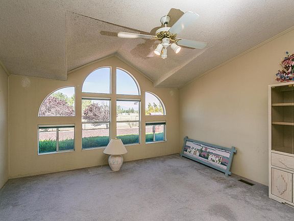 Wonderfully maintained home in the hills of Chino Valley offers a spacious open floor plan. Kitchen & laundry have numerous cabinets & counter space w/newer stove & dishwasher. dining area offers large built in hutch. living room is open to great room w/vaulted ceilings & decorative windows. Cozy fireplace can be enjoyed in master bedroom & while taking a Jacuzzi bath. Master closet is the size of a small bedroom! Exterior of home recently repainted, roof replaced, newer window screens, security flood lights, drought tolerant landscaping, 2 huge storage sheds, pet friendly dog run, chicken coop, perimeter fenced & cross fenced. Main driveway gate is remote controlled, no need to get out of car in the rain or snow!