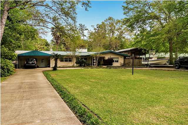 Spectacular Waterfront off Rabbit Creek. Incredible Waterfront features include: 80 feet on Canal, Boathouse with power, water and boat lift, Bulkhead with Boardwalk, Saltwater Gunite Pool with Slate Decking and Fire Pit surrounded by landscape lighting. Interior offers 4 Bedrooms and 2 bath, split floor plan. Large Master bedroom with French Doors leading to pool. Master Bath with 2 lavatories, garden tub and separate shower. The kitchen has custom cabinets, granite surfaces, Sub Zero Refrigerator, Double Ovens, Induction Cook top. Family Room overlooks outside paradise. Vaulted Ceilings, Floor to Ceiling Windows, Custom Built in Bookcases and Gas Fireplace. The exterior is easy to maintain with Brick and Stucco Exterior, Double Pane Windows and Lifetime Metal Roof. Fenced Yard. Storage Building, 40 Ft. Covered Storage ( Boat or RV), Concrete Circular Drive and Generator.