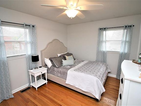 SEE NEW INTERIOR PHOTOS! Charming, wonderfully maintained ranch has fabulous features such as new energy-efficient windows, newer HVAC, renovated bath, new paint and new plumbing. Family room has hardwood floors which continue through much of home plus dining area. Large, eat in kitchen with vaulted ceiling has been refreshed with new paint and features pantry, eating counter plus room for a table. There are 3 bedrooms with new ceiling fans and a renovated bath with custom-made vanity and double sinks plus new luxury plank flooring. Downstairs is large den and bonus room that can be used an office, exercise room or non-conforming bedroom and a 2nd full bath. Outside is a wide driveway which is perfect for multiple cars and a lovely fenced backyard with patio, firepit and storage shed.