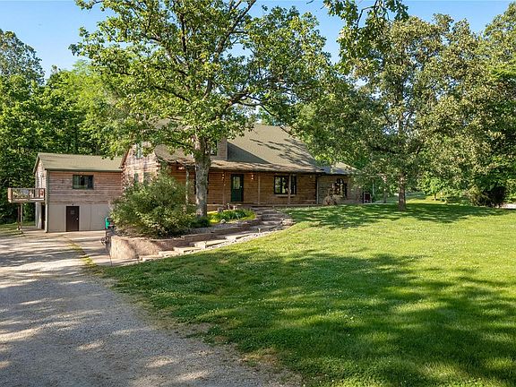 Come see this beautiful log home that sits on a 1.24-acre with access to a stocked pond. Home sits off the highway and backs to woods. The covered front porch offers lots of space and there is an additional patio with a pergola that overlooks the pond. Besides the abundant living space in the main home, there is an attached 900sq ft apartment/ Master bedroom suite with separate entrance, garage, and basement access. The space offers a sunroom and kitchen and a bathroom with a walk-in tub. The main home has over 2400 sq. feet of living space and a large kitchen that leads to the separate dining room that opens to a huge vaulted great room offering spectacular views of the lake. The main level bedroom has a walk-in closet. There is an additional office on the main level that leads to the apartment/ master bedroom area. The upper level offers 2 bedrooms, a full bath, and a loft. There is a second home for sale next door in withheld for $145,000.-(only sold with or after this home sells).