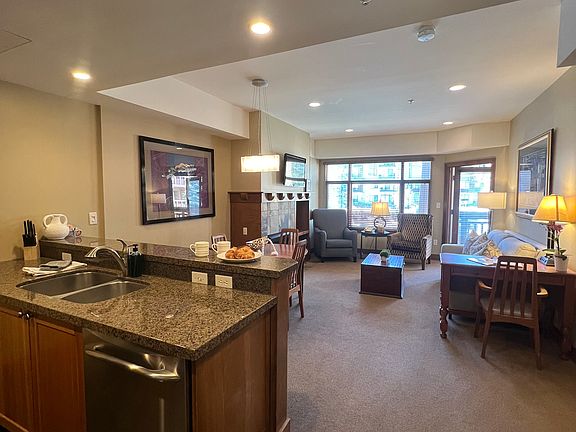 AVAILABLE MOTH TO MONTH Nestled in a prime location, just moments away from scenic golf courses, winding biking trails, and picturesque hiking paths, this exquisite 2-bedroom, 2-bathroom rental offers the perfect blend of adventure and tranquility. Enjoy the lively atmosphere of summer concert nights while having your own peaceful sanctuary to return to. Step inside to find a haven of comfort and convenience. The fully stocked kitchen is perfect for preparing gourmet meals, while the private patio provides an idyllic spot to unwind with a serene view of the majestic mountains. Whether sipping your morning coffee or relaxing after a busy day, the mountainside backdrop creates an unmatched atmosphere of peace and beauty. Take your relaxation to the next level with an array of exceptional amenities. Soak in the rooftop hot tub, letting the warm water soothe away the stress of your day, or take a dip in the pool beneath the sun. For the ultimate wellness experience, enjoy access to the gym, sauna, and steam room, ensuring a refreshing stay for your body and mind. Fully furnished and equipped for a seamless experience, this home features air conditioning for comfort, a plush king bed for restful nights, and a cozy queen bed for your guests. This pet-free and non-smoking rental includes all utilities for your convenience, ensuring a hassle-free stay. An underground parking spot is also provided for your convenience. Whether you're looking for a rejuvenating escape or an action-packed getaway, this property offers the perfect retreat for an extended stay. - AVAILABLE FOR A SUMMER RENTAL ONLY - *MID JUNE UNTIL MID NOVEMBER* MONTH TO MONTH RENTAL AVAILABLE No smoking, utilities included, parking included for 1 car, can be month to month lease, no pets