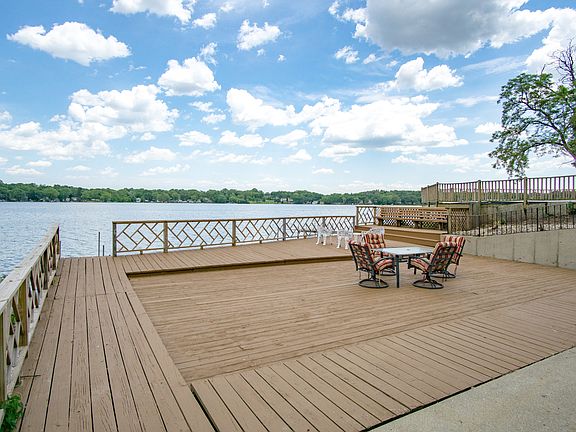 A piece of paradise all year round! Picture yourself sitting on the upper balcony soaking in the gorgeous lake views and the sunrise over Wonder Lake. This adorable cottage features a desirable open floor plan. The living room boasts a stone fireplace. The kitchen offers a breakfast bar, stainless steel appliances and plenty of counters to prep. The master suite features gorgeous views too. The updated full finished walkout lower level has plenty of room for entertaining plus a full bath. The lot features 58 feet of lake frontage, a pier, and huge deck to enjoy the lake living lifestyle. So much is new...garage 2018, stamped concrete driveway, walkway, and new roof. 1504 sf, 3 bedrooms, 3 full baths, plus 2 fireplaces complete the package. Turn the key and start enjoying resort living.